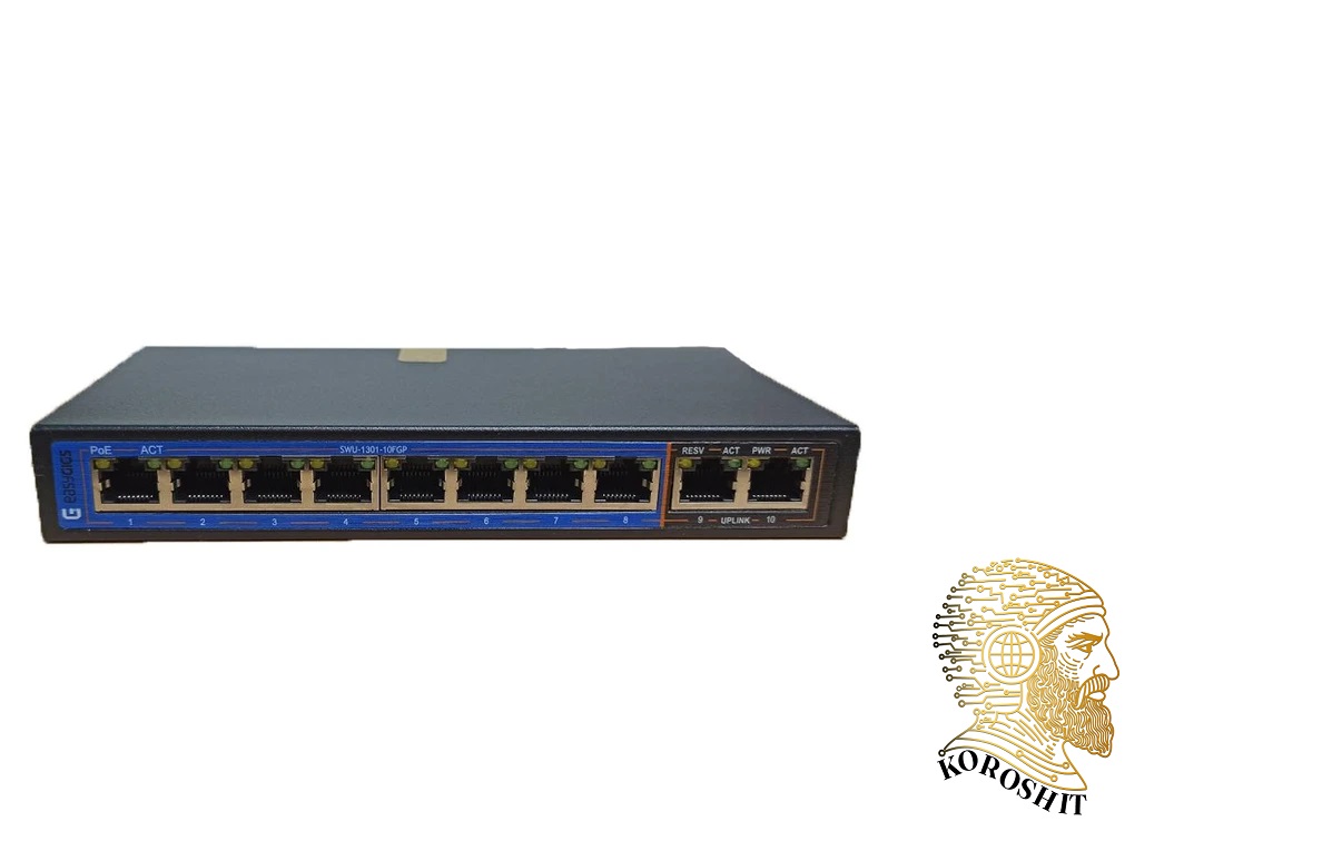 - 10 پورت شبکه با 8 پورت PoE سرعت 10/100 مگابیت بر ثانیه